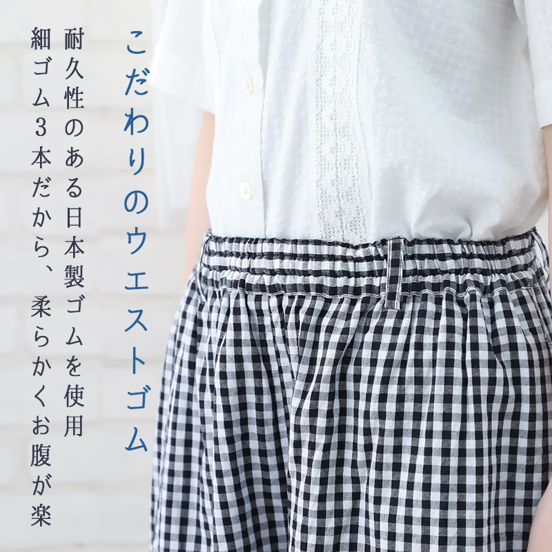 ウエストゴムはこだわりの日本製で、耐久性があり、細3本ゴムだから締めつけ感が少なくお腹が楽。